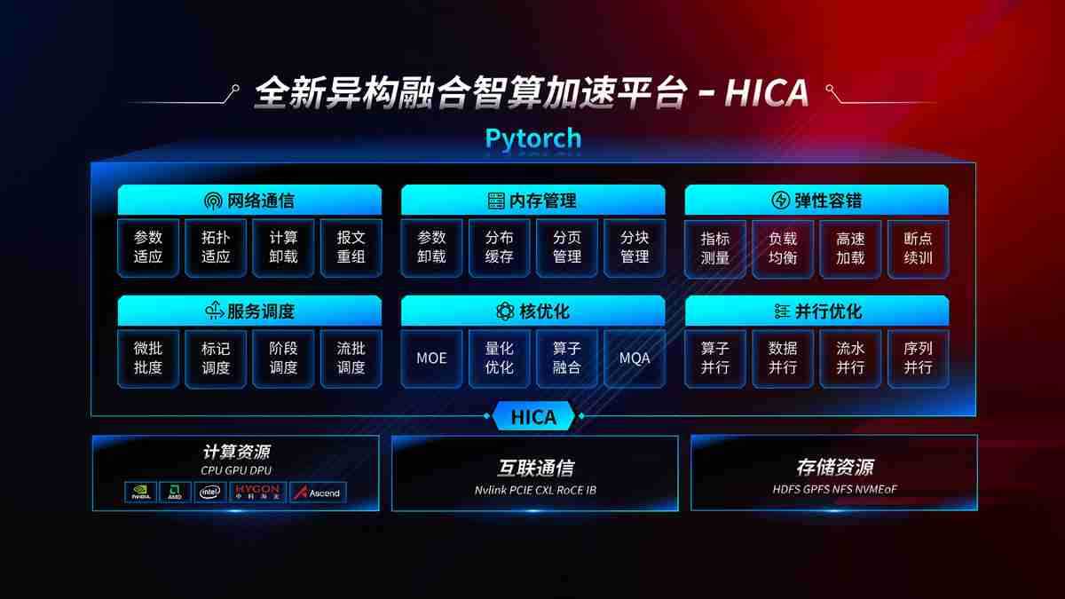 通过自研的服务层、、、中间适配层、、、以及调度编排算法,,,采用数据并行、、、模型并行等多种并行方式,,,把并行计算任务进行有效的分解,,,使其分别由相应的软件栈和算力资源来承接。。当GPU资源变化,,HICA可以实时动态调度计算子任务并调整模型拓扑和架构,,以充分聚合各种算力资源。。。。